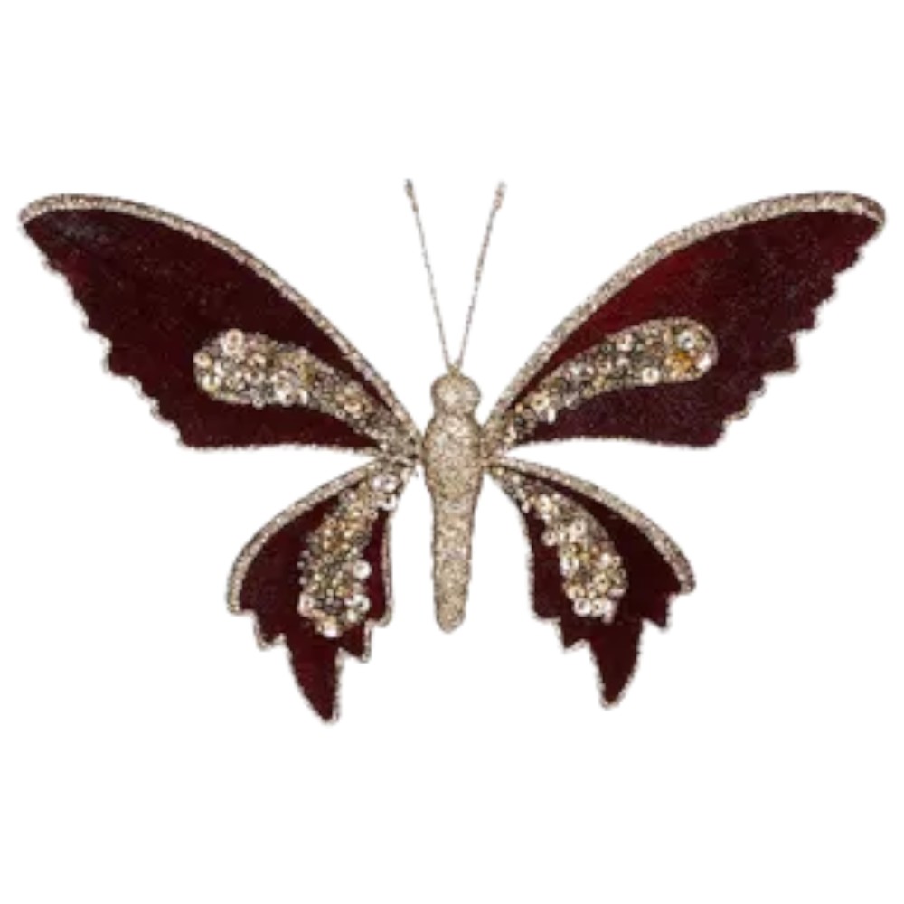 Decorative butterfly with clip, polyester, Red, 20 cm