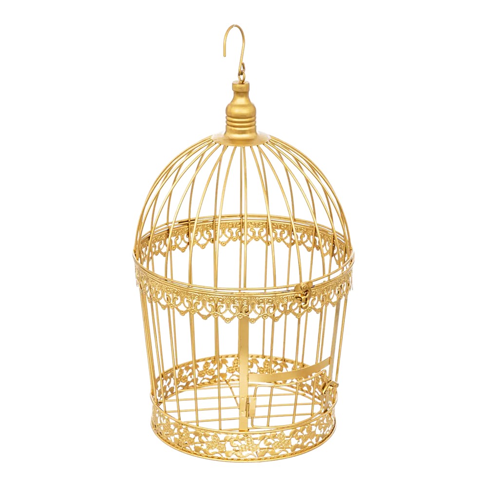 ntroducing an elegant decorative cage in gold color that will add elegance and unique charm to any environment. Made of high-quality metal, this cage has a refined design and solid construction. Thanks to the decorative details, it is a perfect decorative element for classic and modern environments. This cage is equipped with a hook that allows for easy hanging, allowing for a variety of adjustments. The cage can be used as a stylish flower cover, candlestick or simply as a stand-alone decoration.