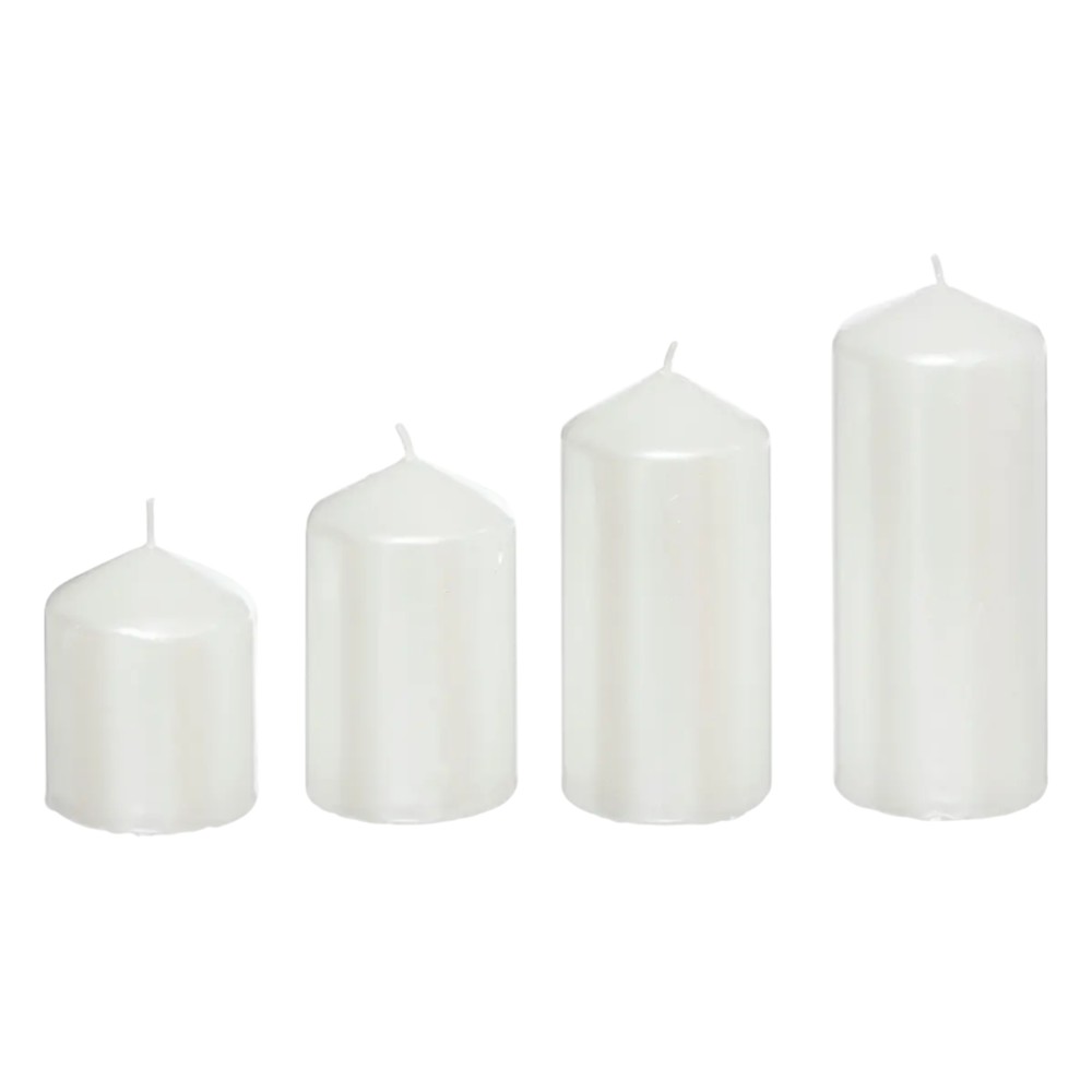 Decorative candle (pk 4), satin white color, D5x6 cm; D5x8 cm; D5x10 cm; D5x12 cm