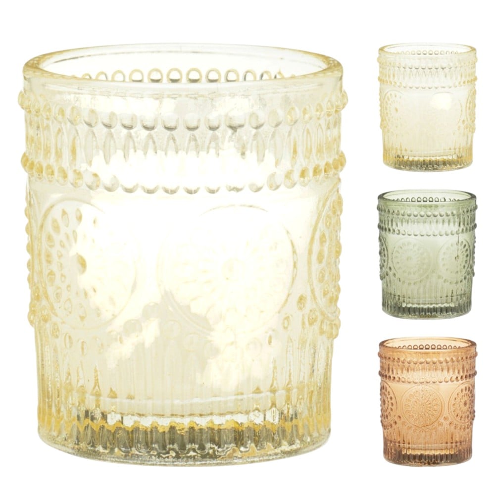 Decorative candle with Christmas motifs, white/green/beige, 5x6 cm