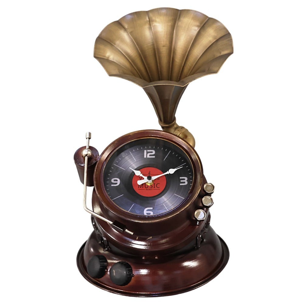 Decorative clock, Gramophone, metal, brown, 17x17xH38 cm