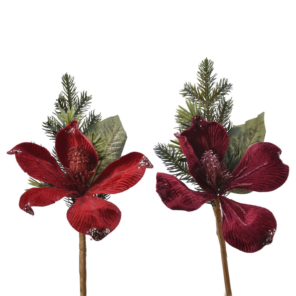 Plastic decorative flower , green/red color, 50 cm. Can be used to decorate New Year trees and any festive environment, bringing you the magic of the holidays closer.