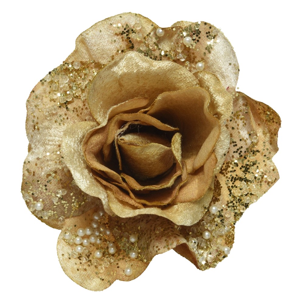 Decorative flower with grip, polyester, gold, 8x6 cm