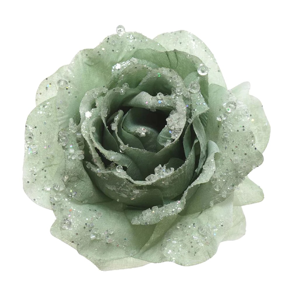 Decorative flower with grip, polyester, mint green, Dia.14x8 cm
