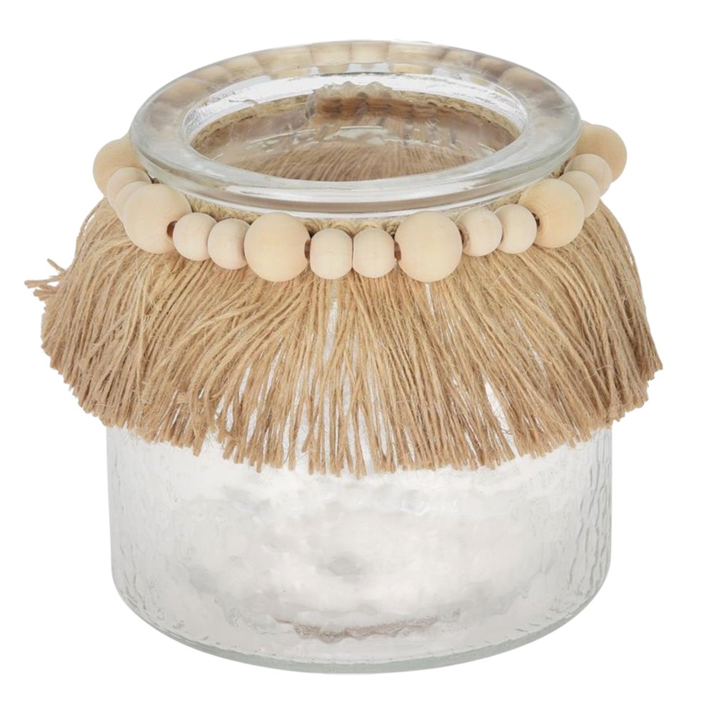 This decorative jar with oriental motifs is a very unique detail for your compositions. You can display it on shelves or even tables. You can also create a nice idea for displaying artificial flowers or even dried flowers. The details of the beads and threads in brown add a subtle touch with modern motifs. The jar is made of quality and environmentally friendly glass material. Its diameter is 10.7 cm and you can also use it to hold your small items.