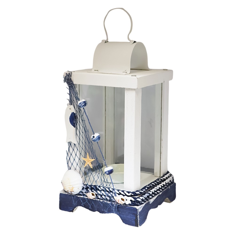 You're reviewing:Decorative lantern, wooden/metal, assorted, white/blue, 9.5x9.5xH18 cm