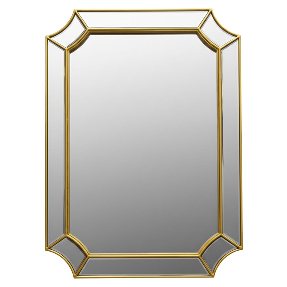 Decorative mirror with a gold colored metal frame, measuring 90x65 cm, represents a harmonious combination of elegance and functionality. The gold colored metal frame has a luxurious look that brings light and warmth. It easily fits into any environment, visually expanding the space and adding a sense of transparency. To maintain its shine is recommended gentle cleaning with a microfiber cloth and the use of special glass cleaners, avoiding abrasive substances that can damage the metal finish. This mirror is an ideal choice for those looking for a practical and elegant decorative accessory.