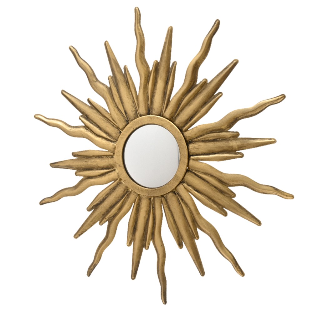 Add shine and elegance to any space with this decorative mirror with a gold frame. Made of durable polyresin, it combines lightness with luxurious style, reflecting light beautifully. The 58 cm diameter and 1.5 cm thickness make it suitable for any wall, whether in the hallway, living room or bedroom. A simple but effective detail that gives your space a sense of warmth and refinement.