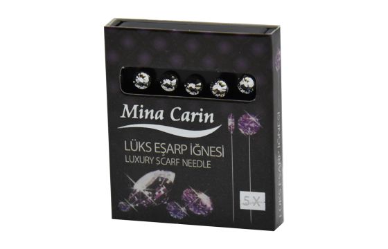 Decorative clasp for headscarf or scarf, made of metallic material, with white gems. The package contains 5 pieces.