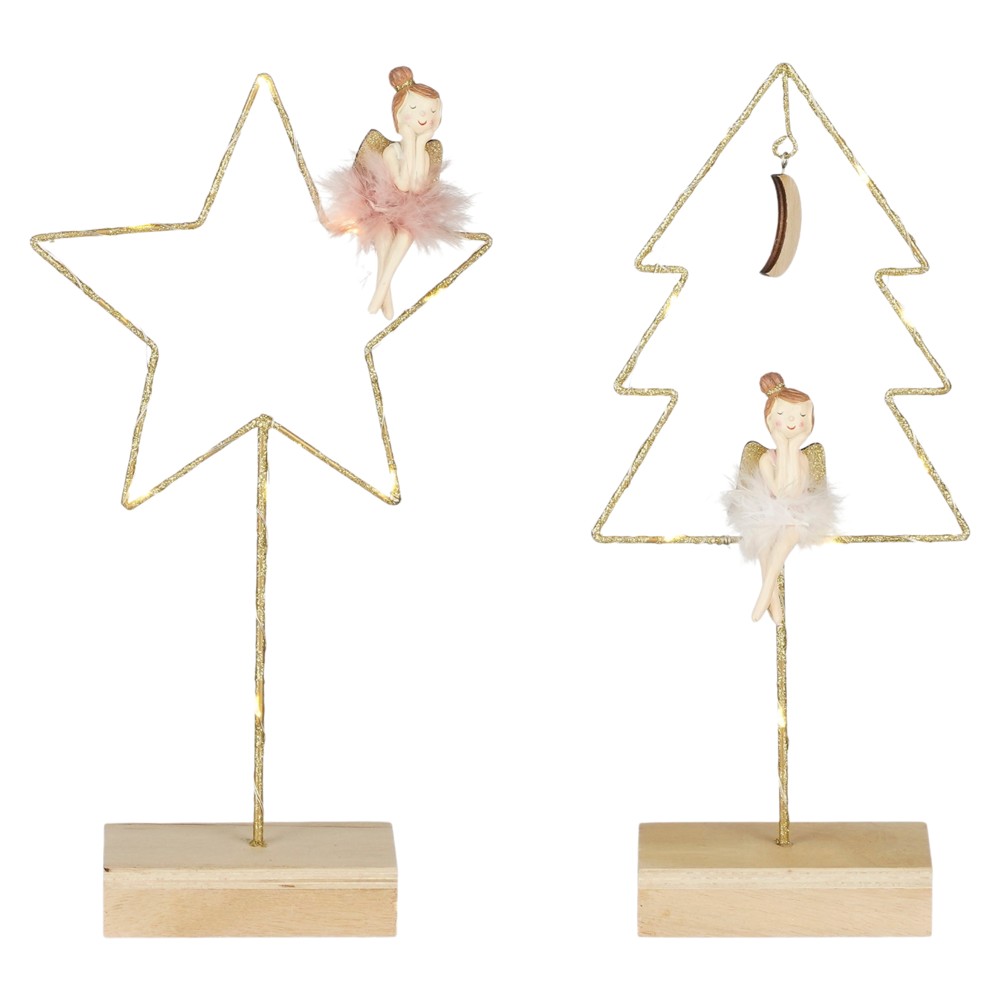 Decorative object with battery, Tree, Star, LED lighting, white, pink, L15xW6xH36.5 cm
