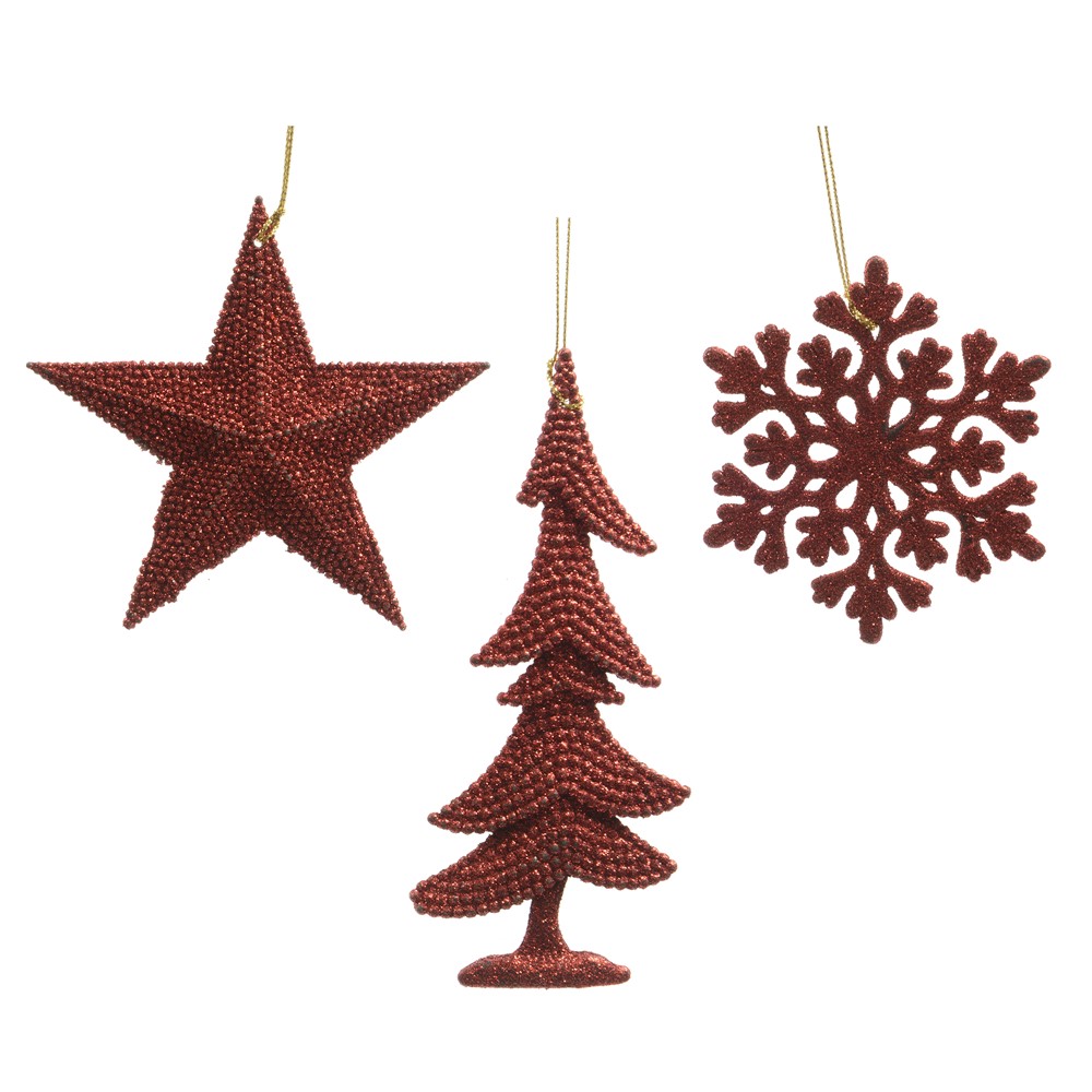 Very nice classic decorative elements. Find 3 different shapes inside the packaging and they are ready for you to hang on your trees. Add the beauty of the holiday season with these little decor elements.