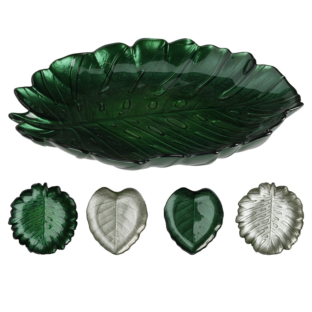 Decorative serving plate in various leaf shapes. Adapted to serve cakes, dried fruits and others.