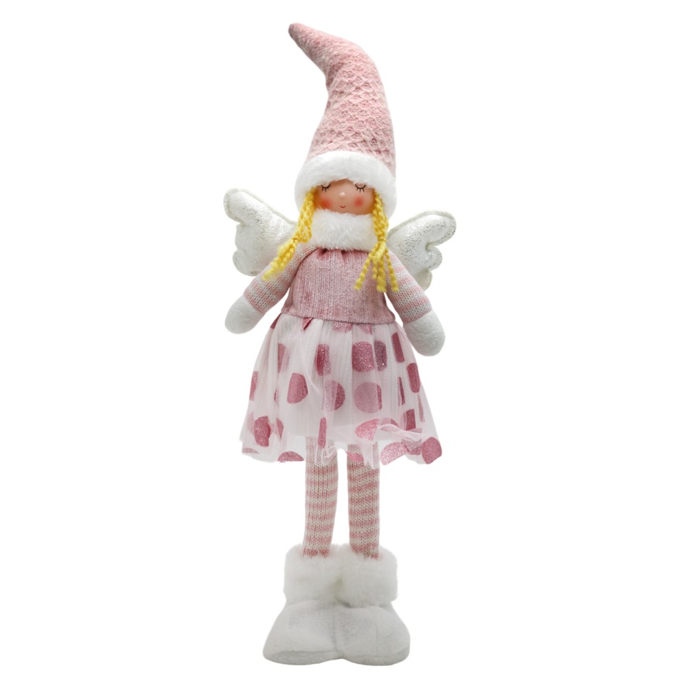 Decorative plush angel, polyester, pink, 47 cm, standing on feet