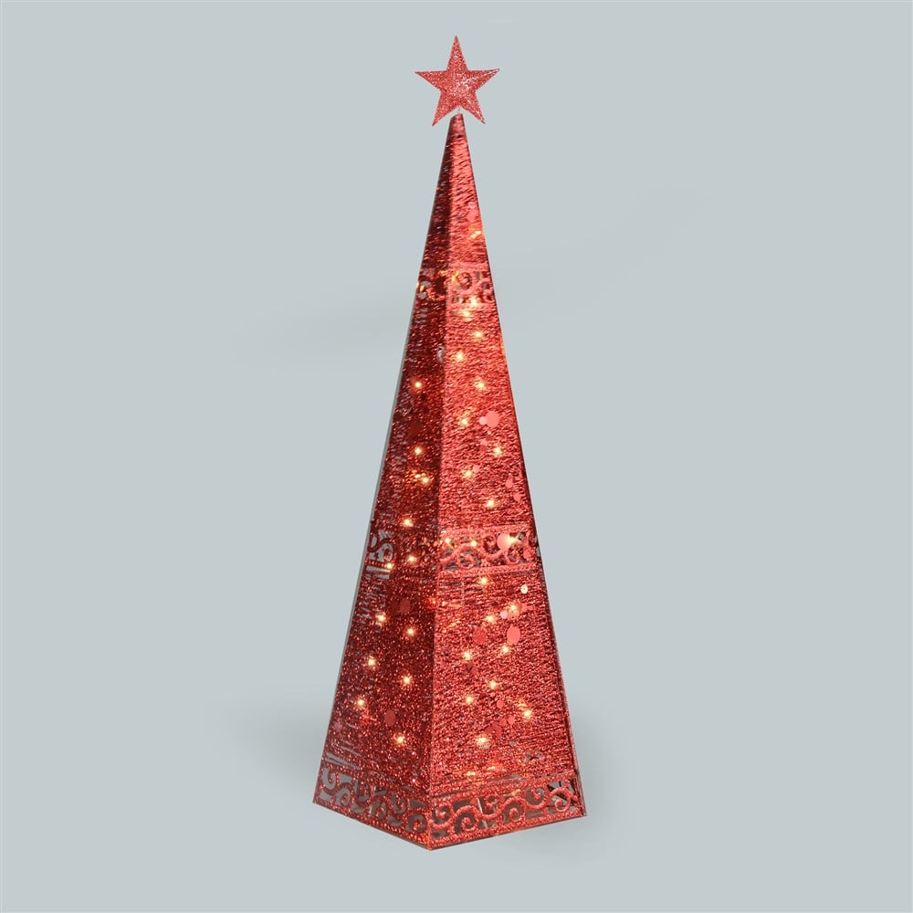 Decorative pyramid with LED lights, 3000 K, red color, H80 cm