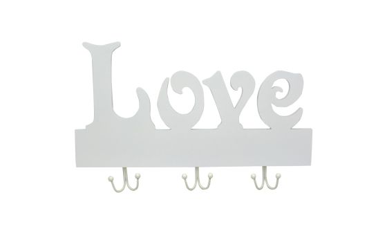 Decorative sign and hook, metallic, white, 50x23.5xH23.5 cm