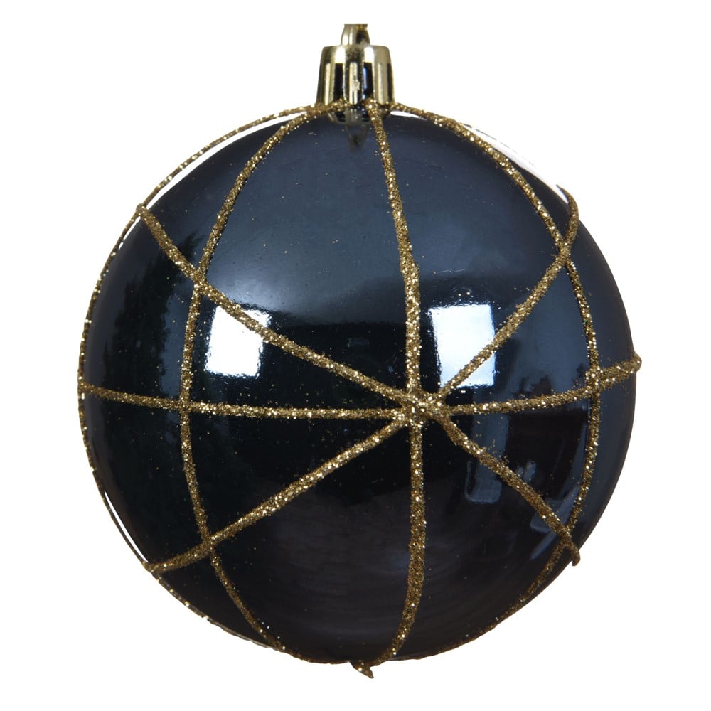 Decorative sphere of dark blue colored glass 8 cm in diameter. This decorative accessory can be used to decorate the New Year tree, adding the magic of the holidays to your festive settings of the end of the year.