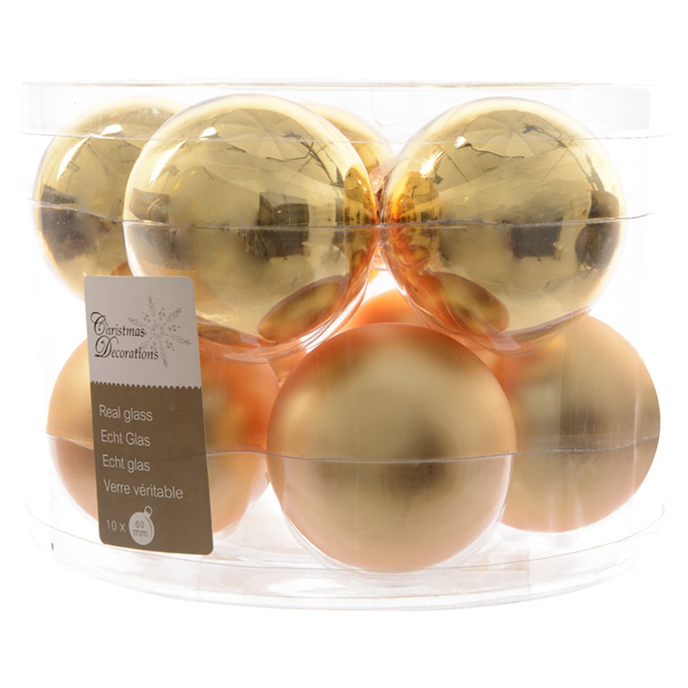 Decorative sphere, glass, gold, dia 6 cm, 10 pc
