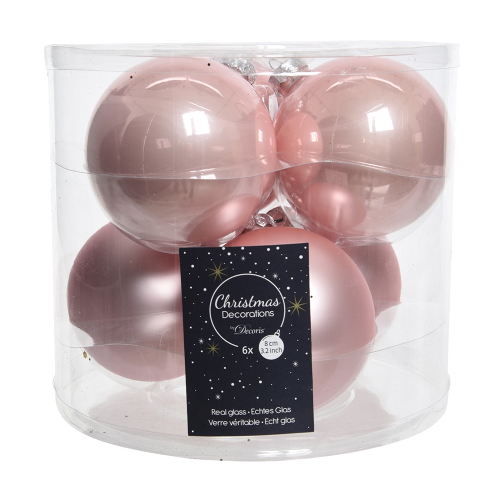 Decorative sphere (Pk 6) Size: D.8 cm Color: Blush pink, Material: Glass