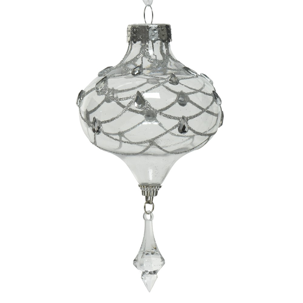 Decorative sphere with different shapes, glass, silver / transparent, Dia. 8 cm