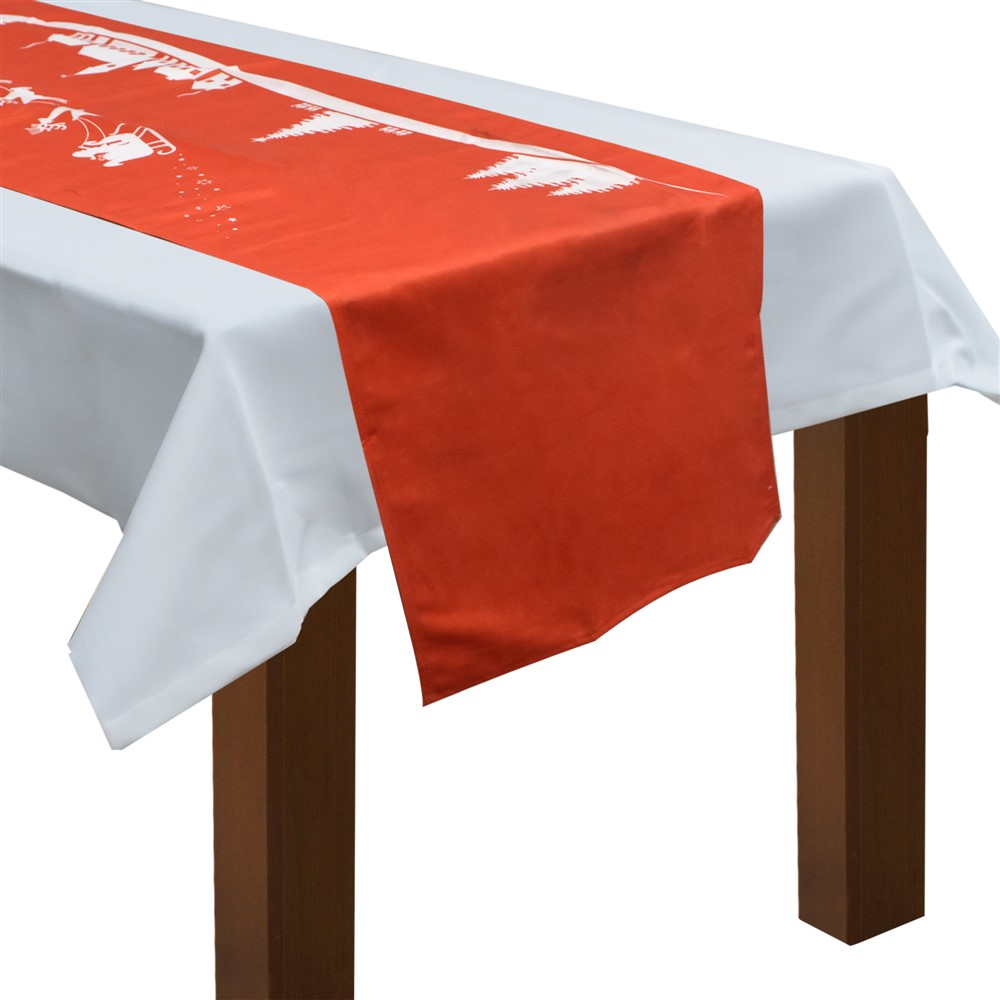 Decorative table runner, made of 65% cotton and 35% polyester, with dimensions 40x180 cm, with Christmas design in different colors. Used as a decorative object for setting the tables during the Christmas and New Year holidays. The constituent material is resistant to washing, does not absorb grease or stains and does not retain wrinkles, which makes washing and ironing easier. This product is suitable for use in non-professional and professional interiors. Can be easily washed in the washing machine at a temperature up to 40 ° C, to maintain the softness and color of the material.