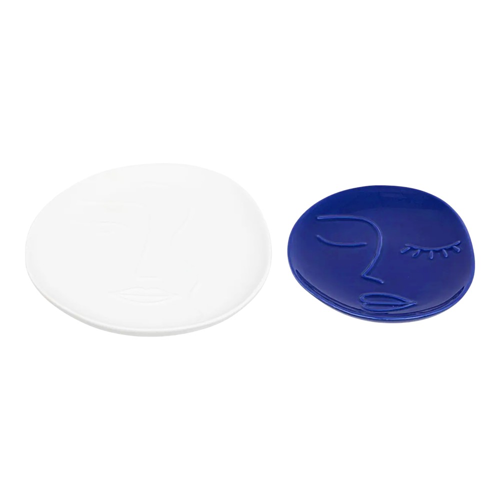 Decorative tray set with modern design and face shape. They are made of ceramic material in blue and white. You can use them to decorate your home and add a touch of luxury to your dining room. Combine them with the rest of the items in the same collection for a complete effect in your space.