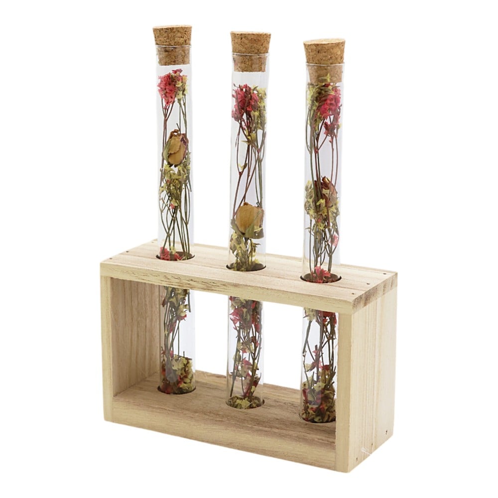 Decorative vase, glass/wooden, natural, 15x6xH22 cm