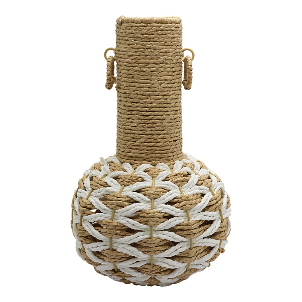This decorative rattan vase in natural and white with dimensions 23xH24 cm is a refined accessory that brings a warm and organic atmosphere to any environment. Masterfully crafted from natural materials, it combines the traditional elegance of rattan with a modern and simple design, giving your space a special natural and delicate touch. The natural and white colors are easy to adapt to any style of decoration, making this vase ideal for placing dried flowers, artificial plants or other decorations. With compact dimensions of 23 cm diameter and 24 cm height, this vase is perfect for tables, shelves or bedside tables, adding elegance and style to your interior decor.