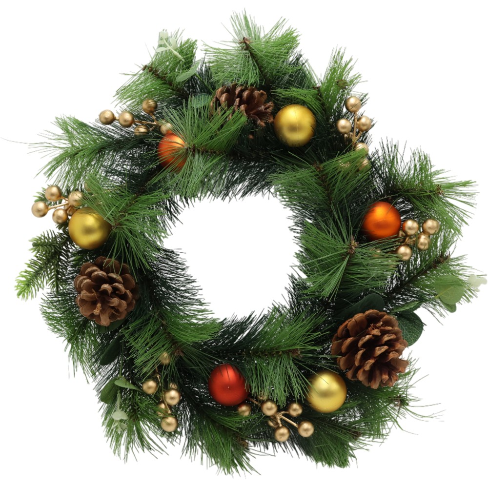 You're reviewing:Decorative wreath, PE, green color with gold decorations, 45 cm