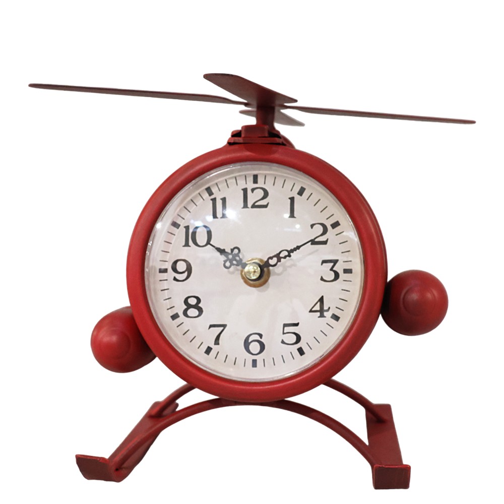 The "Helicopter" table clock is a unique and simple addition to bring a different and creative touch to your environment. Carefully constructed from high-quality metal, this watch comes in an attractive red color, giving it a bright and different look. Its convenient helicopter-shaped design makes it shine as a special focal point in any space. The clear, easy-to-read display makes it easy to see the time at a glance. The "Helicopter" table clock is not only a practical tool for telling the time, but also a decorative object that will make your environment stand out and attract everyone's attention with a special and original touch.