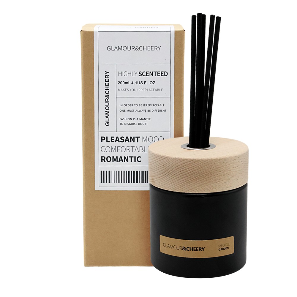 Diffuser, 200 ml, with wooden lid, black/matt