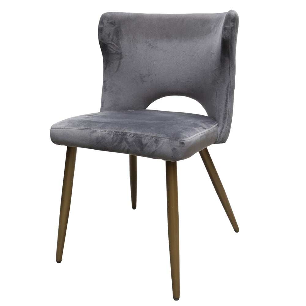 Dining chair, metal frame (black/gloden), velvet upholstery, light grey, 43x55xH80 cm