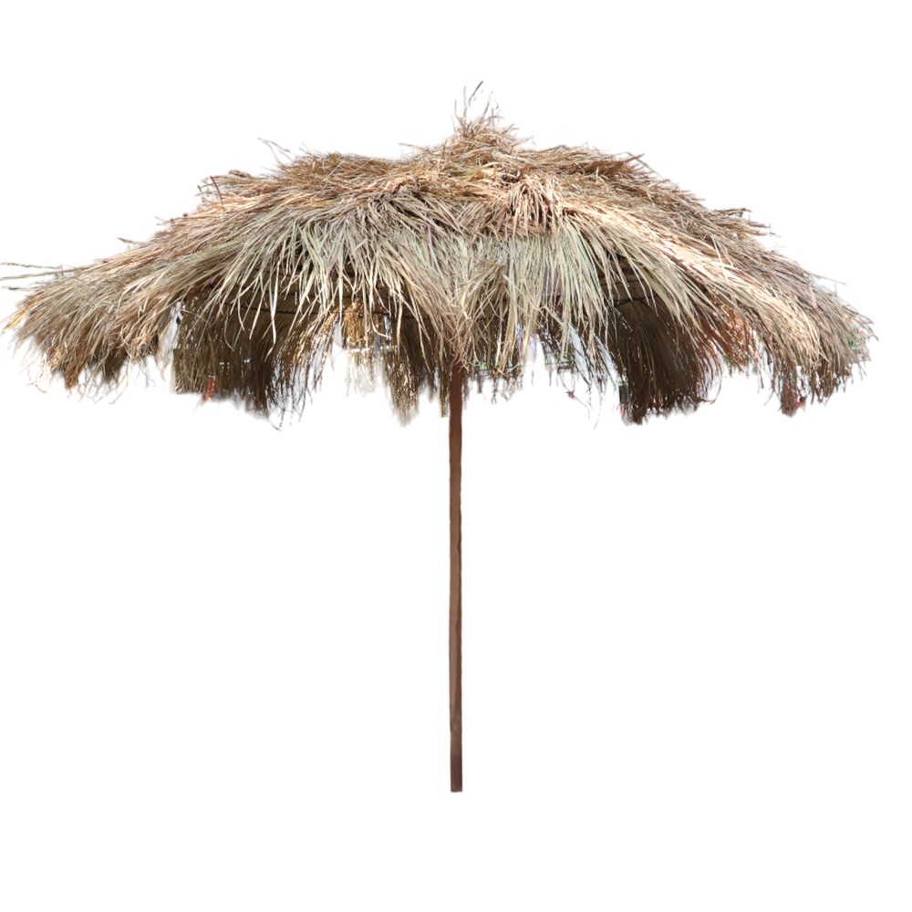 Designed for resorts and beach bars. Combined with quality materials and a unique style, this umbrella offers not only protection from the sun, but also a sense of relaxation and natural authenticity. Teak (Tectona Grandis) wood structure: Teak is one of the most resistant woods to moisture, UV rays and climate change. Durable and visually warm, this precious wood adds elegance and longevity. Natural straw covering: Inspired by tropical styles, the natural straw covering not only refreshes the environment in an organic way, but also creates a unique and welcoming look. Despite the natural materials, the straw structure offers ample shade and natural ventilation, maintaining freshness even on the hottest days. Perfect for environments that require a natural, boho, rustic or luxurious style with a tropical spirit. The combination of teak and straw creates a decorative element that attracts attention and significantly improves any space.
