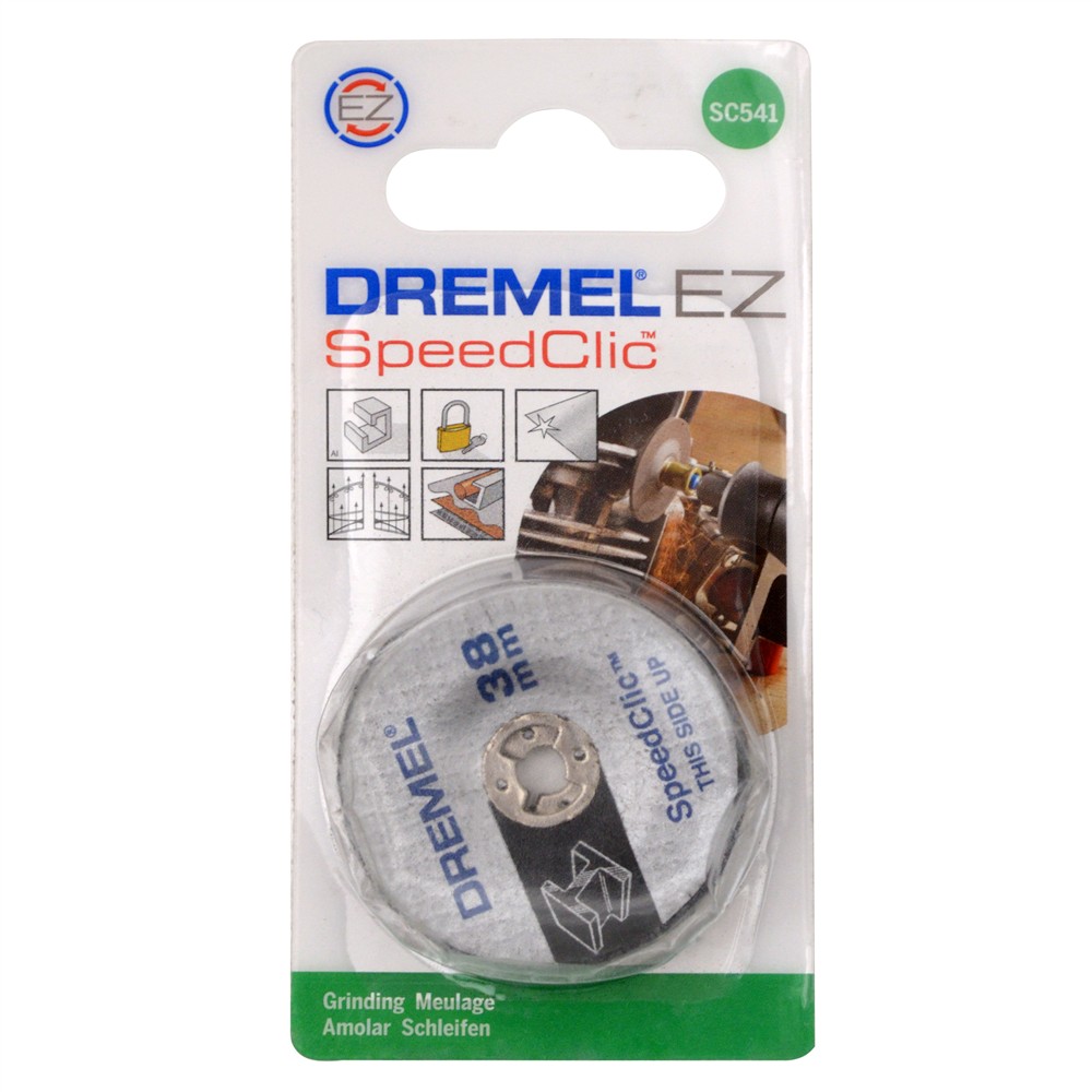 Metal grinding wheel 38mm. The Dremel SC541 Grinding Wheel is ideal for grinding and deburring different types of metal. Because of the glass fibre reinforced 38mm diameter wheel you can grind faster and more efficiently. The EZ SpeedClic system enables quick, easy and keyless accessory change.