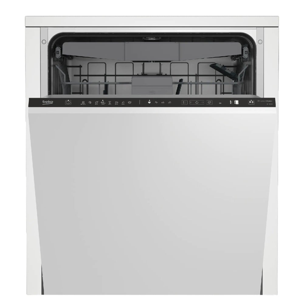 The Beko BDIN38643C dishwasher, with the new CornerIntense rotating arm, ensures that the dishes in the corners of the device are washed very thoroughly. Also with the WaterSafe+™ system, it automatically shuts off the water supply in the event of a failure. Even a small amount of water is enough to damage your floor or electronic devices in the event of a leak. Protect yourself from these types of threats with WaterSafe+™ technology, a water leak prevention system that automatically shuts off the tap water supply in the event of a failure. Devices and floors are now safe. CornerIntense is a new wash arm design in Beko dishwashers, which will ensure that dishes in the corners of the device are washed very thoroughly. Thanks to the additional rotating washing nozzle, a strong jet of water will reach even the most remote corners of the dishwasher, thanks to which you will no longer have to plan the arrangement of dishes in it. At the end of the washing cycle, the dishwasher door will open automatically, thanks to which the dishes placed inside will dry much faster and without your intervention. Thanks to this solution, the dishwasher also consumes less electricity, reaching a high energy class. If your built-in dishwasher is so quiet that you sometimes wonder if it's even turned on, LedSpot comes to your rescue. The LedSpot is a program status indicator that shines on the floor at the base of the unit to let you know if the unit is running. No more wondering when to empty the dishwasher.