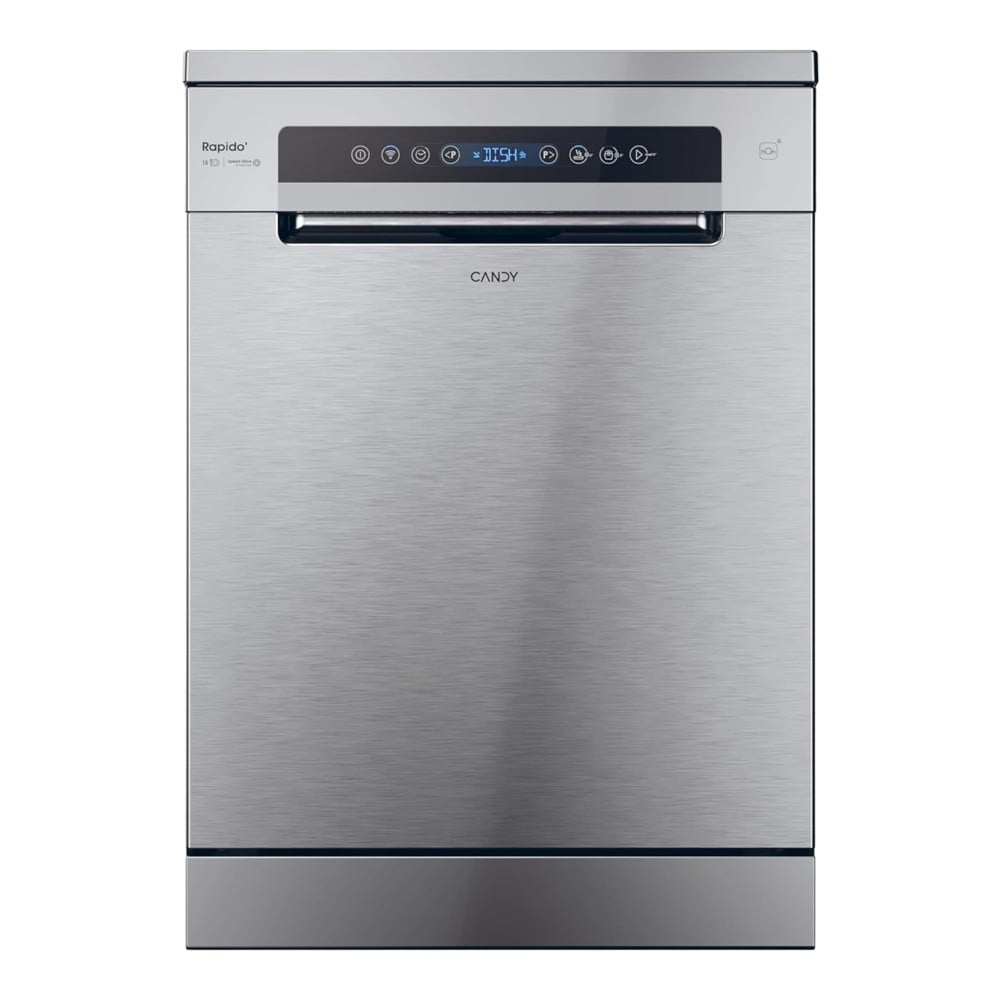 Candy Rapidò is the fastest and most spacious dishwasher on the market. It is equipped with a complete set of rapid programs for your needs, simplifying your day thanks to the MAXI-TUB, the largest washing space in a standard size, helping you load your kitchen items. Less washing time, more washing space. Candy Rapidò is based on the Speed Drive Inverter motor, the most innovative and durable motor, capable of increasing cleaning performance while reducing energy consumption. The new Candy Rapidò dishwasher is the most spacious on the market (standard size), offering maximum space for kitchen utensils, even the largest ones: trays, bread knives, salad bowls. The new Candy Rapidò dishwasher is equipped with a 49-minute program, capable of perfectly washing half a load, reducing consumption. The intelligent door opening system can be selected for all washing cycles of the new Candy Rapidò dishwasher. During the drying phase, the door will automatically open a few centimeters, allowing air to circulate in the dishwasher to allow the dishes to dry naturally. The duration of the selected cycle will be modified to allow the temperatures used during the rinsing phase to be optimized and to ensure a significant reduction in energy consumption. The new Candy Rapidò is smarter than ever, thanks to the hOn app. Just take a photo of the basket. By automatically detecting the quantity, type of material and position of the dishes, you get advice on how to optimize your dishwashing. You get the right, efficient and faster cycle for perfect results, saving time and money. This Candy washing machine allows you to delay the start of the washing program. Thus, you can set the start with a delay of 3, 6 or 9 hours. Candy dishwashers with inverter motors benefit from a 5-year warranty. No more worries with the Candy dishwasher! Thanks to its anti-leakage device, designed to guarantee the highest level of safety. In the event of errors or malfunctions, the safety valve immediately stops the water flow to prevent overflow.