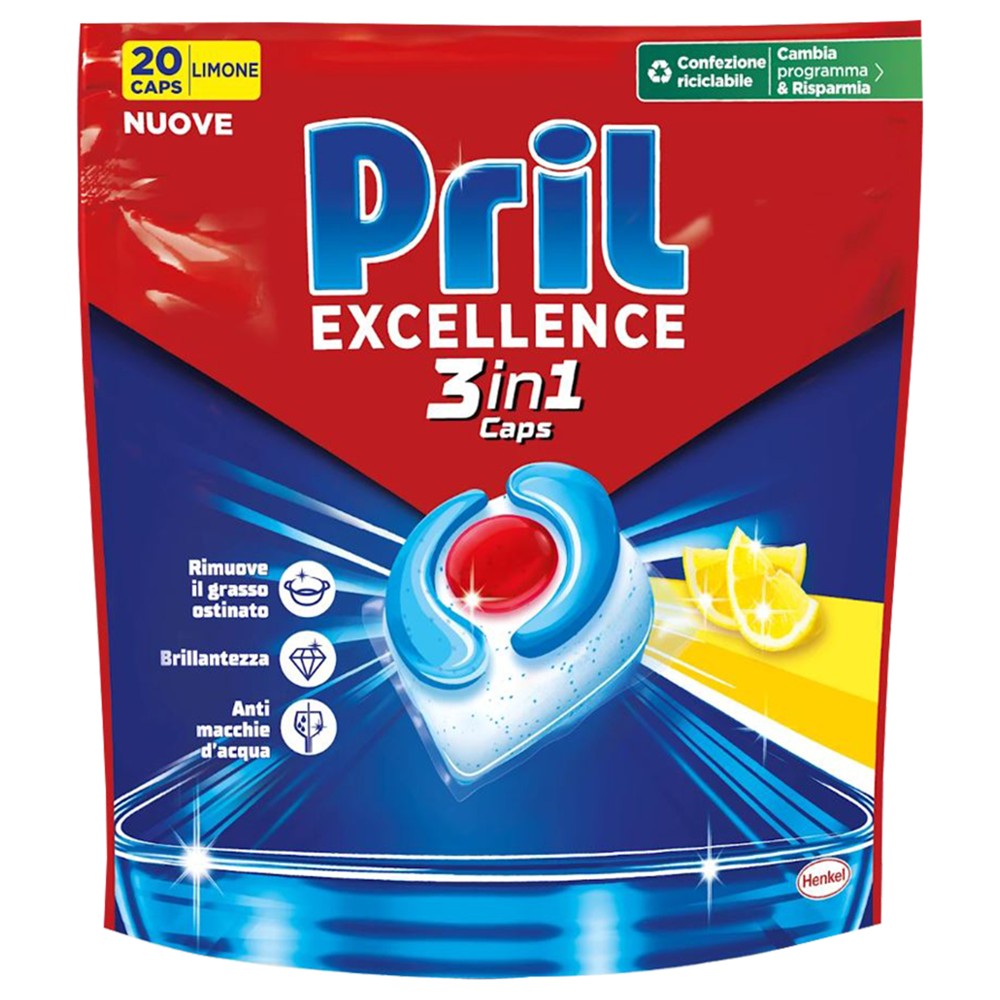 Pril Excellence 3 in 1 dishwasher capsules are the ideal solution for perfect dishwashing. Their fast-dissolving formula removes stubborn grease, even in short and ecological cycles at low temperatures. Ensures brilliant dishes and glasses, preventing water spots, and combats unpleasant odors, leaving a fresh lemon scent. Perfect for those looking for excellent results with maximum comfort.