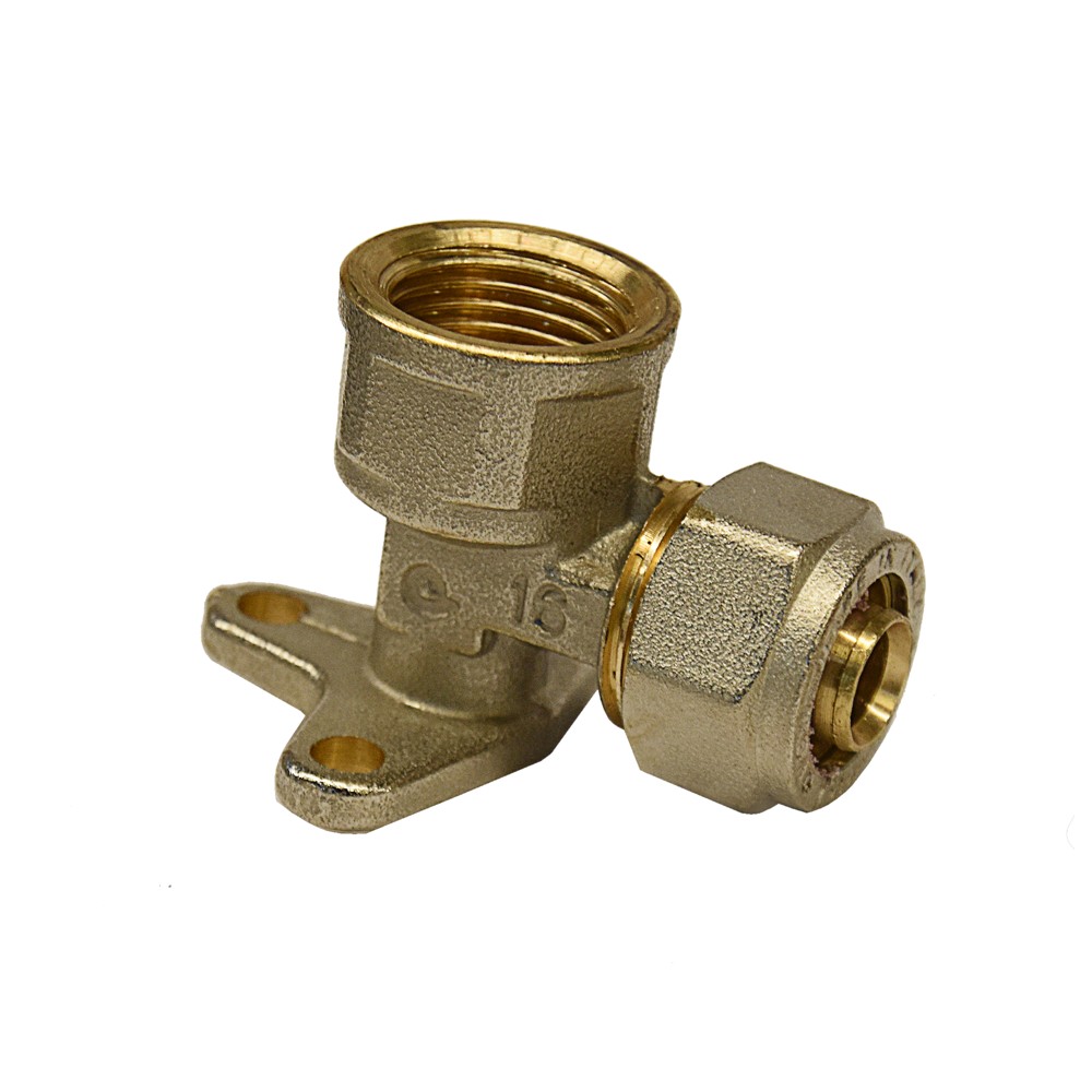 Elbow 90 ° for multilayer, with tightening, DN 16x1/2" M, with flange, bronze is widely used for multilayer pipe installations, it is mainly used in drinking water systems, but also for boiler and sanitary water systems.