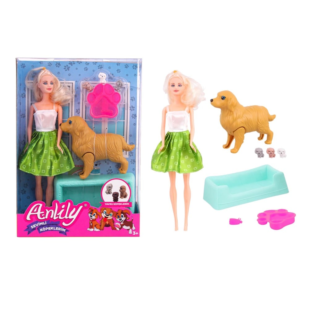 Toy set for girls, which includes a doll, a puppy and other accessories. This set helps to develop the imagination, stimulates the development of the sensory skills and the development of learning skills in children, through role play. The constituent material and paint have no content that can be toxic or harmful for children and the product is certified for safety in use. This product is suitable for use by children over 3 years old.