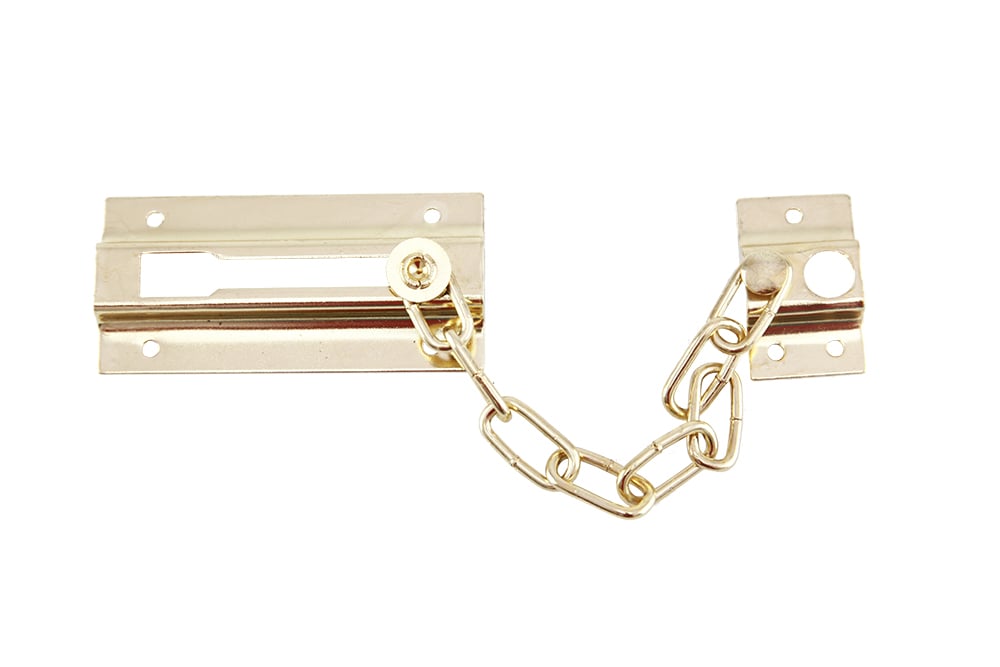 This chain door guard is constructed from steel and comes brass galvanized. It is used to secure your door while allowing room for viewing or ventilation. It comes complete with fasteners for a quick and easy installation.