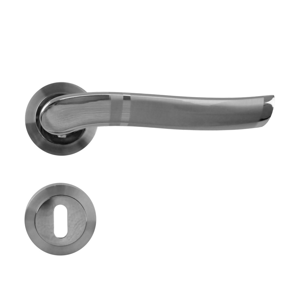 This door handle with chrome color.It is a qualitative and resistant handle, her body is composed of solid zinc material, including accessories for instalation.