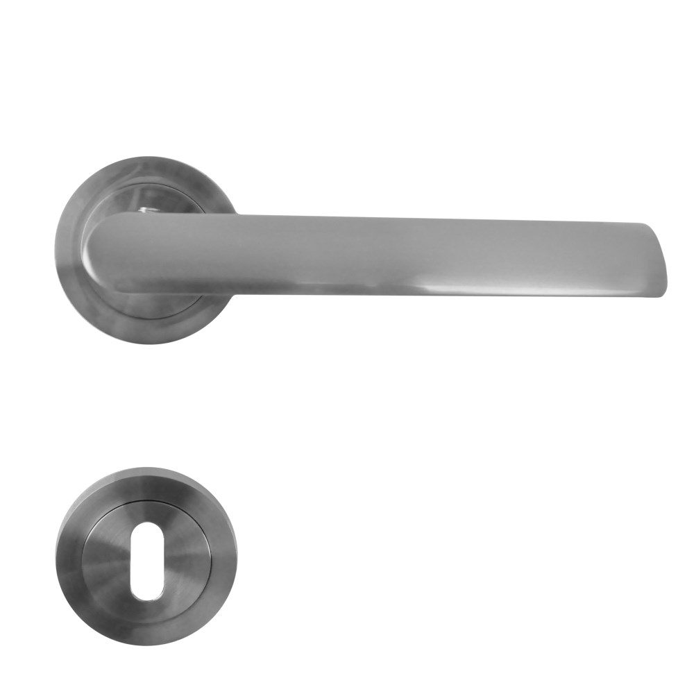This door handle with chrome color.It is a qualitative and resistant handle, her body is composed of solid zinc material, including accessories for instalation.