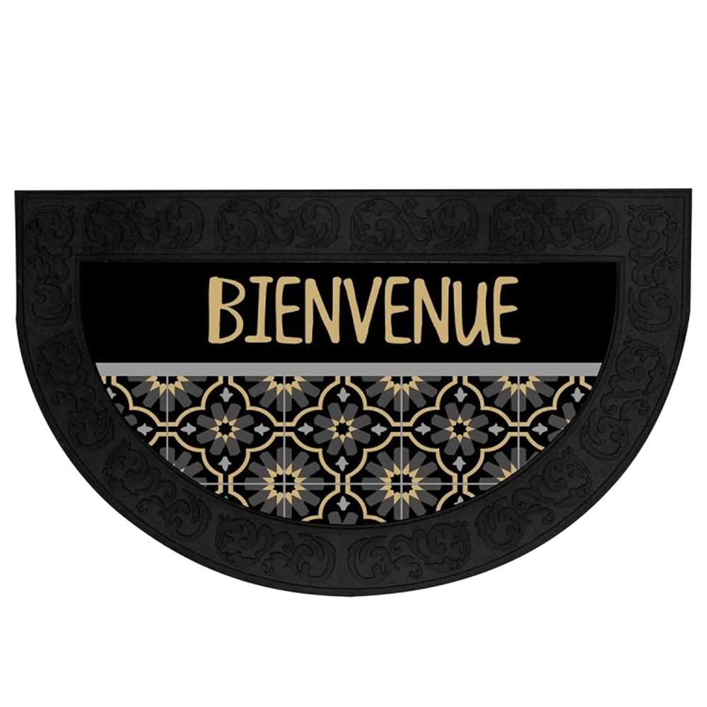 This simple and elegant "Bienvenue" doormat is suitable for placing at the entrance of your home. Made of black rubber with a floral pattern, it offers a warm and welcoming greeting with the word "Bienvenue," which means "Welcome" in French. This doormat is ideal for adding a distinctive stylistic detail and greeting guests in an elegant and friendly manner.