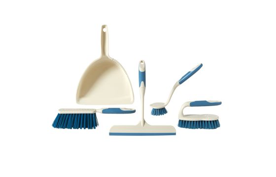 Set of litter boxes, very functional. It can be used for any possible type of cleaning, from cleaning garbage to cleaning stains, floors, walls, etc. This set makes your life easier. The set contains a mop, a mop brush, a window squeegee, a brush for cleaning dishes, and a brush for cleaning carpets.
