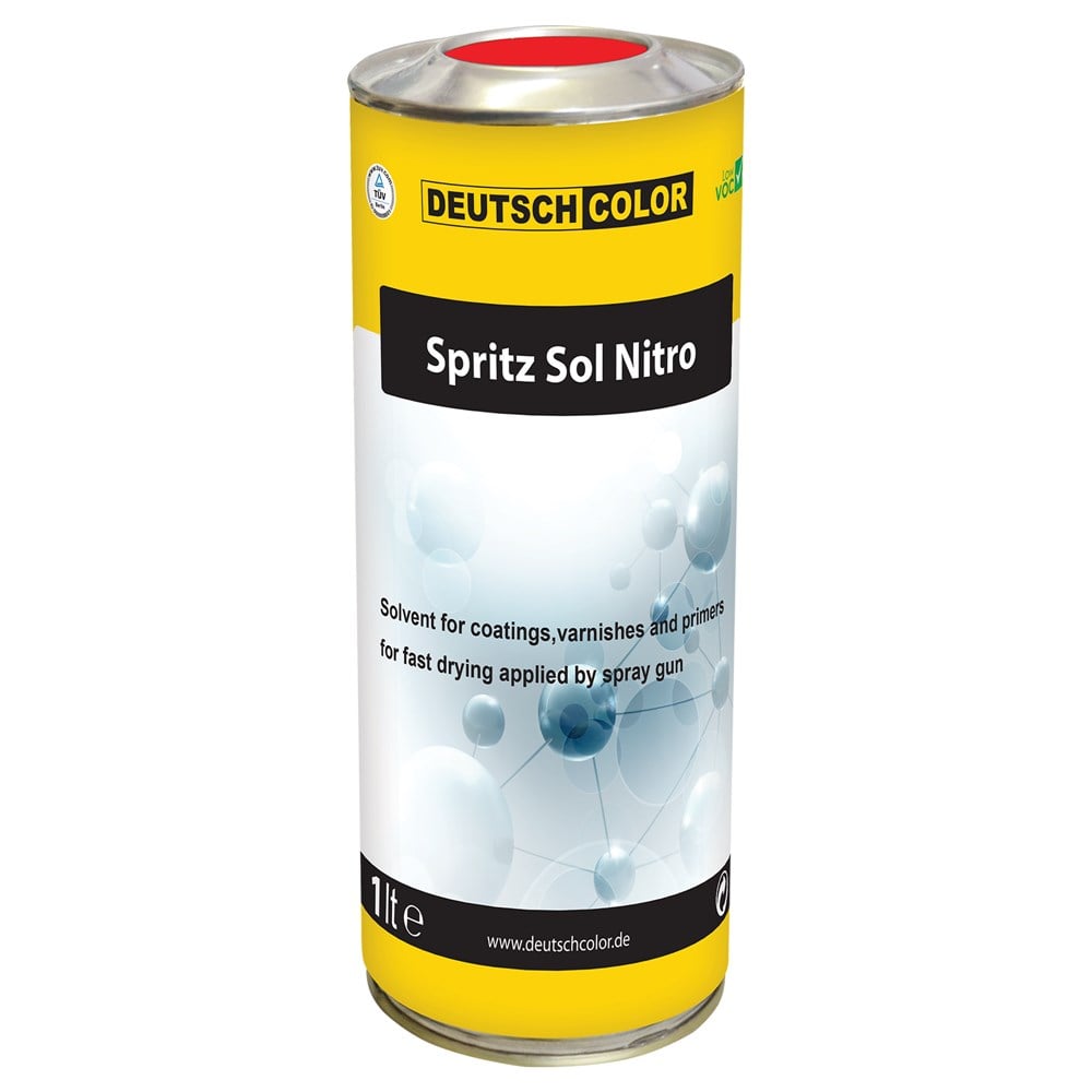 Spritz Sol Nitro it is a solvent for coatings and primers.It is a colourless product with the characteristic odor of organic solvent and aromatic hydrocarbons.It is suitable for the fast dry primers and enamels applications by spray gun because these products have a high evaporation grade.