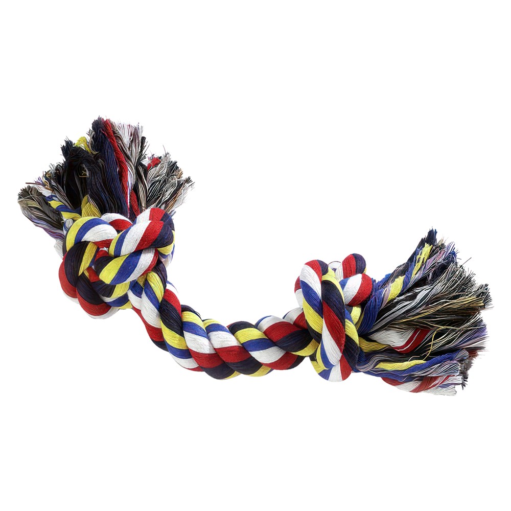 Tough and resistant cotton rope bone with two knots. Available in various sizes.