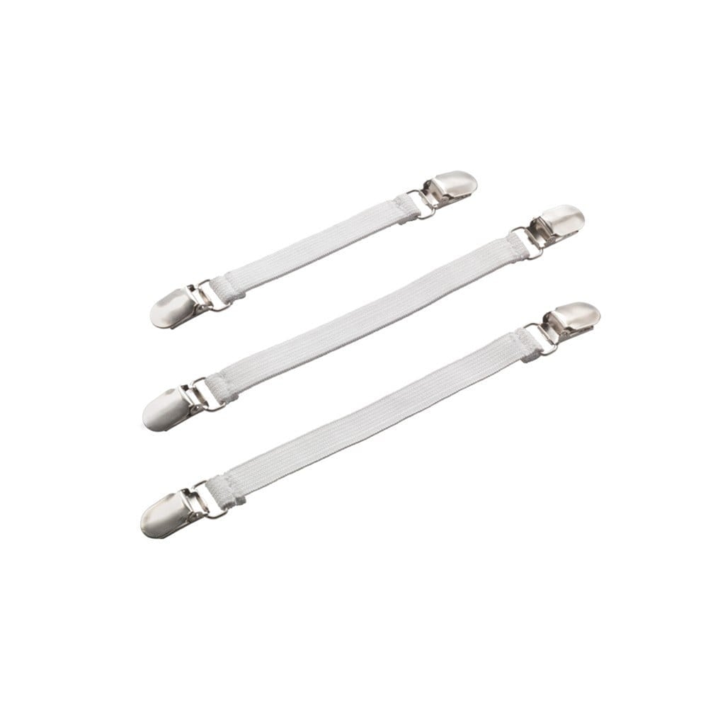 Elastic tension clips for ironing board covers, chromed plated clips, white, spandex (elastane), set of 3 pcs
