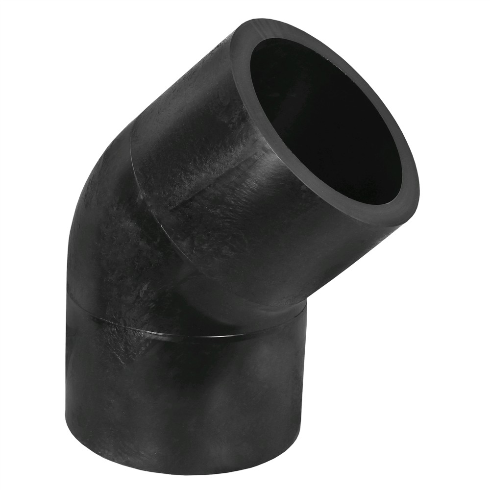 Elbow HDPE Ø 250mm with angle 45° used widely today in Europe for angular lines installations of water supply infrastructure and lines for the transport of natural gas. The elbow mounted by the method Butt-fusion. Elbow enables network returns 45° angle. For welding HDPE pipe with elbow used welding heat machinery which makes it possible merger of elbow pages and pipe and through pressure enables their union. Manufactured with European standards, resistant to corrosive materials, high resistance to deformation of land and resistant to pressure up to 16 Bar.