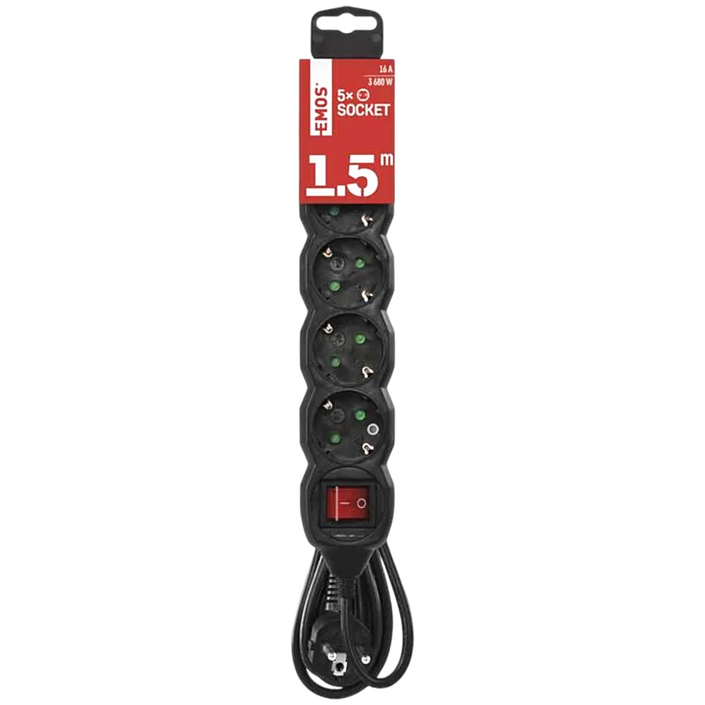 You're reviewing:Electric extender, 5 modules, 1.5m, 3x1.5mm, black, with switch, 16A