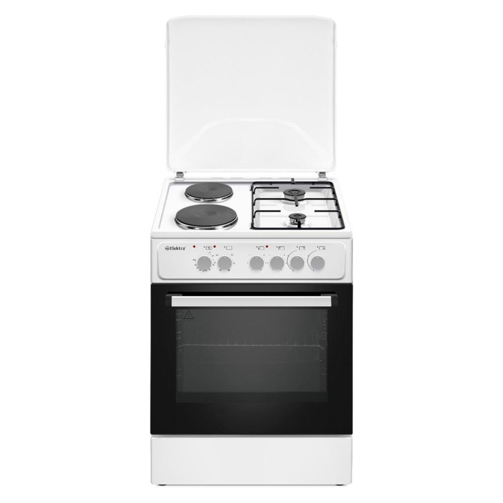 Electric stove with two electric and two gas burners. The oven has a capacity of 71 Lt with energy class F/A. The oven has internal ventilation and has 5 cooking programs. Dimensions: H87xW63xD60 cm