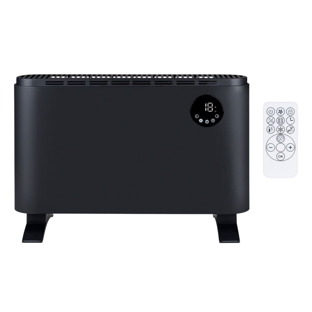 With the Alpina digital convection heater, you can quickly enjoy cozy warmth in your home. This electric heater combines a sleek design with versatile ease of use. Thanks to the modern digital control panel and the included remote control, you can effortlessly set the temperature, heating mode, and timer. The heater has three heat settings (750W, 1250W, and 2000W) and a powerful turbo function that distributes heat faster, ideal for the coldest days of the year. A unique feature of this convection heater is its flexible placement options: use it freestanding with the included legs for mobile use in different rooms, or mount it to the wall with the included mounting hardware for a permanent, space-saving installation. This makes it a perfect fit for the living room, bedroom, study, or office.